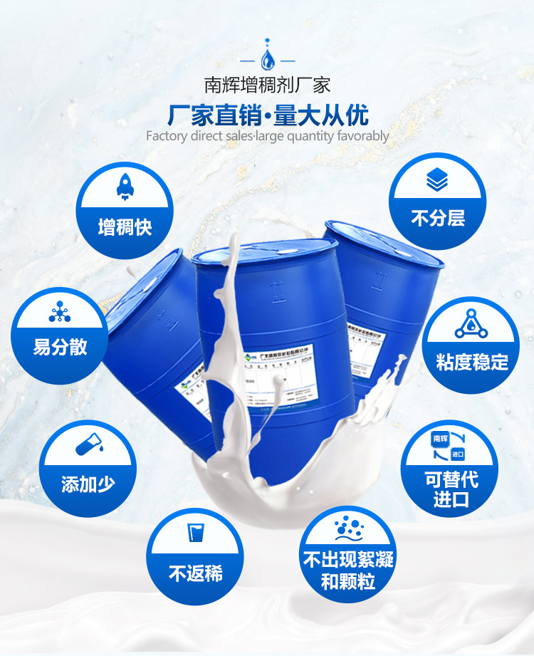 南辉硅橡胶增稠剂是一种阴离子疏水改性聚氨酯流变增稠剂,特别适用于硅橡胶、橡胶、水性涂料、内外墙乳胶漆、水性油墨、有机硅胶、粘合剂、弹性胶浆体系的增稠,具有杰出的增稠效果以及优异的流动、流平性。